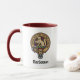 Crachá da crista Clan MacGowan cercado por uma correia e fivela sobre fundo tartano. Texto personalizado de ambos os lados.
