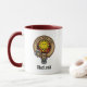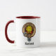 Clan MacLeod do crachá da crista Raasay rodeado por uma correia e fivela sobre fundo tartano. Texto personalizado de ambos os lados.
