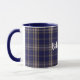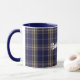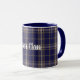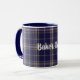 Excelente que olha a caneca escocesa do clã feita no teste padrão azul e tan clássico da regência do padeiro de tartan da xadrez. O texto branco feito sob encomenda está pronto para personalizar para ler o que você quer.