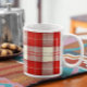 O design é um tartan ou uma xadrez vermelha e branca.Uma caneca de café clássica com uma versão atualizada de um design antigo por Alma Wad. Perfeito para uma reunião com a família. Agora você pode adicionar um monograma, nome, marca, etc., para torná-lo exclusivamente seu.