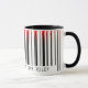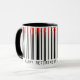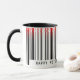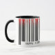 Laser vermelho no código de barras para feliz aposentadoria com nome personalizado. O nome pode ser alterado ou excluído.