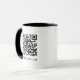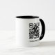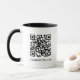 Esta caneca excêntrica é garantida para despertar o interesse e iniciar uma conversa. Basta substituir o código QR fictício por um dos seus, e inserir um URL de site abaixo dele. Nunca foi tão fácil se autopromover, promover um negócio ou uma organização, onde quer que você vá, e fornecer as informações sem nunca ter que dizer uma palavra! O verso mostra um design idêntico.