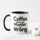"Handle mornings with dark humor and caffeine. This 'Coffee Because Murder Is Wrong' mug is perfect for coffee lovers who appreciate sarcasm. A funny, relatable gift for coworkers, friends, or anyone who needs coffee to stay sane."