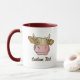 Ilustração da cabeça da vaca. Texto personalizado de ambos os lados.