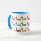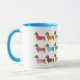Adorável caneca Doxie que você pode escolher uma variedade de cores para a alça e o dentro.