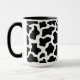 Esta caneca de café de duas tonalidades é mostrada num impressão de vaca branco e preto giro. Tamanho mostrado de 15oz Personalize este item e escolha outro estilo ou comprar de imagem como está.