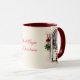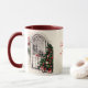 Canecas de Natal com uma cena de safena de uma árvore de Natal em frente a uma janela acesa à luz de velas à noite. Personalize o texto, mais tamanhos e cores disponíveis!