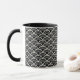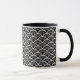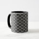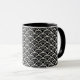 A caneca de café cerâmica é mostrada com um impressão de arte preto e branco. Personalize este item ou comprar como está.
