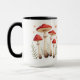 Caneca Cogumelos Agáricos Vibrantes e Elementos Botânicos