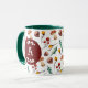 Esta caneca durável apresenta um padrão de coletor de inverno incluindo bolotas, agulhas de pínus, folhas, bagas e, claro, cogumelos! Personalize a letra do monograma moderno rodeada de louros bonitos. As cores de dentro e identificador estão disponíveis em várias opções.