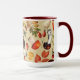 Caneca padrão de cogumelo de outono. Perfeito para um tema rústico e esquema de cores. Folhas e cogumelos nas cores queimadas do outono.