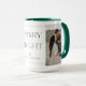 Adote o espírito de feriado com a nossa caneca de café Mínimo de Foto Moderna de Feliz e Brilho Wavy. Esta caneca maravilhosamente projetada mostra uma colagem de 3 fotos elegantemente enquadrada em uma única borda ondulada. O layout simples e mínimo é adornado com sotaques sutis de linha ondulada, adicionando um toque de sofisticação moderna. A mensagem sincera "Feliz e Brilho" é graciosamente escrita em uma fonte elegante, capturando a essência da estação. Perfeito para compartilhar o calor e a alegria dos feriados. Design por Moodthology Papery