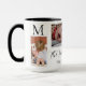 Nesta caneca branca na moda é uma letra de monograma preta no canto e então 3 fotos com o texto preto no meio com o nome da família e data onde você pode personalizar para seu gosto com suas próprias fotos e nome da família.