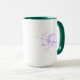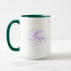 This colorful abstract neon splash coffee mug features a vibrant modern art design on a dark background.