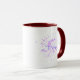 This colorful abstract neon splash coffee mug features a vibrant modern art design on a dark background.