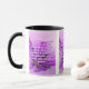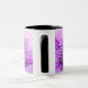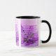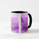 Esta caneca de dois tons mostra um design que apresenta uma fonte Archivo Black com letras coloridas de rosa claro um contorno roxo claro que mostra o verso da bíblia KJV "Colossians 2:8" nesta imagem mostrando uma flor roxa molhada com um tronco verde mais um fundo claro e colorido desse tema baseado na fé. Este verso está referindo o capítulo do segundo do Livro dos Colossianos mostrando o oitavo verso neste tema da citação da bíblia do Rei James bíblia. A jante e o manípulo são vidrados em cores compatíveis, disponíveis em micro-ondas e máquinas de lavar louça de tamanho 11 onças ou 15 onças, construindo cerâmica segura.