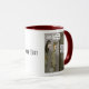 Uma caneca com um desenho fofo e engraçado sobre os testes dos funcionários. Arte original de DBcartoons. Imagem, fundo e texto podem ser personalizados.