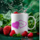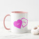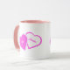 Caneca do Dia dos Namorados com belas imagens de corações rosa e branco. As imagens, o fundo e o texto podem ser personalizados. Arte original de W.B.