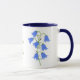 Uma caneca com uma linda imagem de flores de campainhas azuis. As imagens, o fundo e o texto podem ser personalizados. Arte original de W.B.