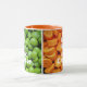 Fotografia das ervilhas de um lado da caneca e das cenouras do outro lado. O texto do lado das ervilhas diz, "Vamos juntos." O texto do lado da cenoura diz, "Como ervilhas e cenouras." A caneca perfeita para amigos, marido e esposa, namorada e namorado, irmãs ou irmãos. Duas pessoas perfeitamente compatíveis ou inseparáveis.