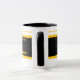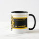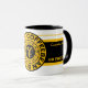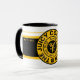 Mug preto e branco 11oz. com um círculo sobre um retângulo preto e ouro com a dentro "A JUÍZIA COFEEBEAN" com "Columbia, MO GO TIGERS!!!" também com o logotipo Y-NOT-ME. Este design é um grito para o estado excelente do Missouri, o estado SHOW-ME. Também, para uma cidade crescente e progressista, Columbia, Missouri.