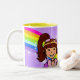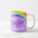O arco-íris brilhante e colorido "seu nome" caçoa a caneca da menina do cabelo escuro da princesa. Presente perfeito para uma criança vibrante. A caneca lê: Nossa mais cara princesa Jennifer ou personaliza esta caneca com as palavras de sua escolha. Caneca projetada exclusivamente por Sarah Trett.