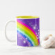 O arco-íris brilhante e colorido adiciona sua própria caneca feita sob encomenda dos miúdos do nome. Presente perfeito para uma criança vibrante. A caneca lê: O Sienna ou personaliza esta caneca com o nome de sua escolha até 6 letras. Caneca projetada exclusivamente por Sarah Trett.