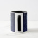 Mug que apresenta o símbolo do zodíaco para Taurus em azul-prata suave, sobreposto com as estrelas da constelação, contra um fundo do céu estrelado formando de azul-da-meia-noite para preto
