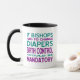 Palavras liberais, progressistas, democratas e/ou pro-Obama lidas como "Se bispos tivessem que trocar fraldas, o controle de natalidade seria obrigatório." Escrito em azul-turquesa e roxo. Aproximadamente um quadrado de 10x10.