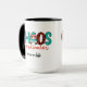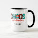 Uma caneca de café divertida para a mãe que diz "Coordenador do Caos" em laranja e lacre e apenas um pouco de impressão-leopardo.