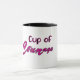 Agrida com palavras "copo da coragem" em letras pretas e cor-de-rosa.