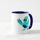 Caneca Coq cartoon bleu joyeux avec ailes déployées.