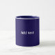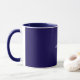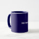 Caneca cor azul-marinho sólida, texto branco,