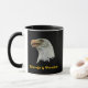 Imagem de uma cabeça de pássaro careca. Texto do ouro Coragem e Liberdade. Dois lados imprimiram caneca de café. Personalizável. Você pode alterar ou excluir o texto. Não se esqueça de escolher outra cor ou estilo da caneca. Você pode transferir este design para outro produto de sua escolha, basta usar uma opção à direita desta descrição. Aproveite e seja feliz!