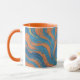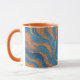 Swirling coral and indigo waves meet shimmering gold accents in this textured abstract design—evoking movement, depth, and radiant contrast