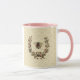 Ilustração de abelha e coroa vintage tingida em fundo padronizado.