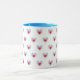 Corações triplos concêntricos modernos em caneca de café, chá ou chocolate branca. Ideal como lembrança para todos! Os três corações representam as dimensões do corpo, mente e espírito.