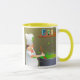 Ilustração bonito de um cozinheiro chefe feliz que veste seus uniforme e stirring brancos uma bandeja gigante do líquido verde. Talvez é sopa ou sopa de ervilhas. De qualquer maneira está espirrando-o por todo o lado nsi mesmo. Imagem disponível em vários presentes e produtos.