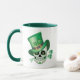 Crânio irlandês com chapéu de Leprechaun, camarões e bastante verde para Rua. Dia de Patrick!