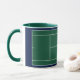 Caneca personalizada com tênis, com tênis de bola amarela no campo do tênis. Edite texto para adicionar o nome do seu tênis, treinador ou amante esportivo favorito.