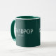 design de caneca de café de vovô com um ano estabelecido com uma fonte branca estampada em um plano de fundo verde de Hunter. Clique em personalizar para editar a cor de fundo!. Visite nosso compro para ver esta caneca em uma grande variedade de nomes de avô.