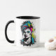 Mulher de rock punk rosa e azul com mohawk e cafeteiras engraçadas amam uma citação sarcástica, Criada à perfeição, servida com sarcasmo. Comece seu dia com uma risada!