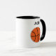 Esta caneca personalizada de crianças apresenta uma ilustração e um nome de basquete.