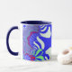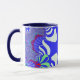 Esta caneca de café fractal colorida tem cores brilhantes e vibrantes como azul e branco. Estas canecas têm várias cores diferentes para escolher entre a dentro e a alça da caneca. Além disso, você pode escolher entre o estilo e o tamanho dessas canecas. Estas canecas são excelentes para uso na cozinha e no escritório.