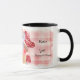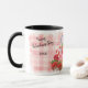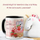 Aqui está uma caneca de presente de Namorados bonito que seu filho, sua filha ou seu neto irão amar! Um pequeno ursinho de coala segura um morango vermelho e se senta sobre um cupcake decorado com coração rosa. Ao redor do cupcake e urso estão balões e doces em forma de coração. Seu texto personalizado está em ambos os lados da imagem; faça-o dizer o que você quiser. Tudo é colocado sobre um fundo de xadrez rosa e branco. Bonita!