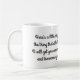 Uma caneca para suas necessidades da manhã. Um poema curto sobre o café é escrito na parte dianteira em uma pia batismal jovial, cursive.