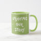 "A caneca de 'Aproveitando nossa história': Um simples lembrete dos belos momentos que você compartilha. Com o seu design branco limpo e sotaques de pontos brancos lúcidos, esta caneca traz um toque de calor ao seu café da manhã, chá da tarde ou bebida confortável à noite. Celebrar os grandes marcos e as alegrias tranquilas da vida cotidiana com esta encantadora adição à sua cozinha." "O presente perfeito para aniversários, aniversários ou momentos 'só porque'. A caneca "Gostar da Nossa História", com sua doce mensagem e uma encantadora design de pontos brancos, é um lembrete ponderado do vínculo especial que você compartilha. Porque as melhores histórias são sempre aquelas que criamos juntos."