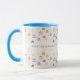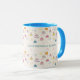 birthday gift coffee mug, whimsical fireworks mug, fun birthday mug design, hand drawn cake mug, colorful celebration mug, cream party theme mug, personalized name mug birthday, cheerful coffee mug gift, cute birthday doodle mug, floating cakes design mug