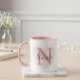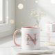 This chic mug features a trending dusty rose pink handle and interior, making it a beautiful accessory for any sophisticated woman. The unique design beautifully combines a large monogram initial with a custom script name (like Nicole), ensuring it’s a truly unforgettable keepsake.