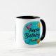 Celebrate in style with this fun turquoise mug featuring “Happy 21st Birthday,” a superscript age, comic-style accents, and a cute muffin. Add any age and name for a personalized birthday gift that stands out and makes the celebration extra special.
